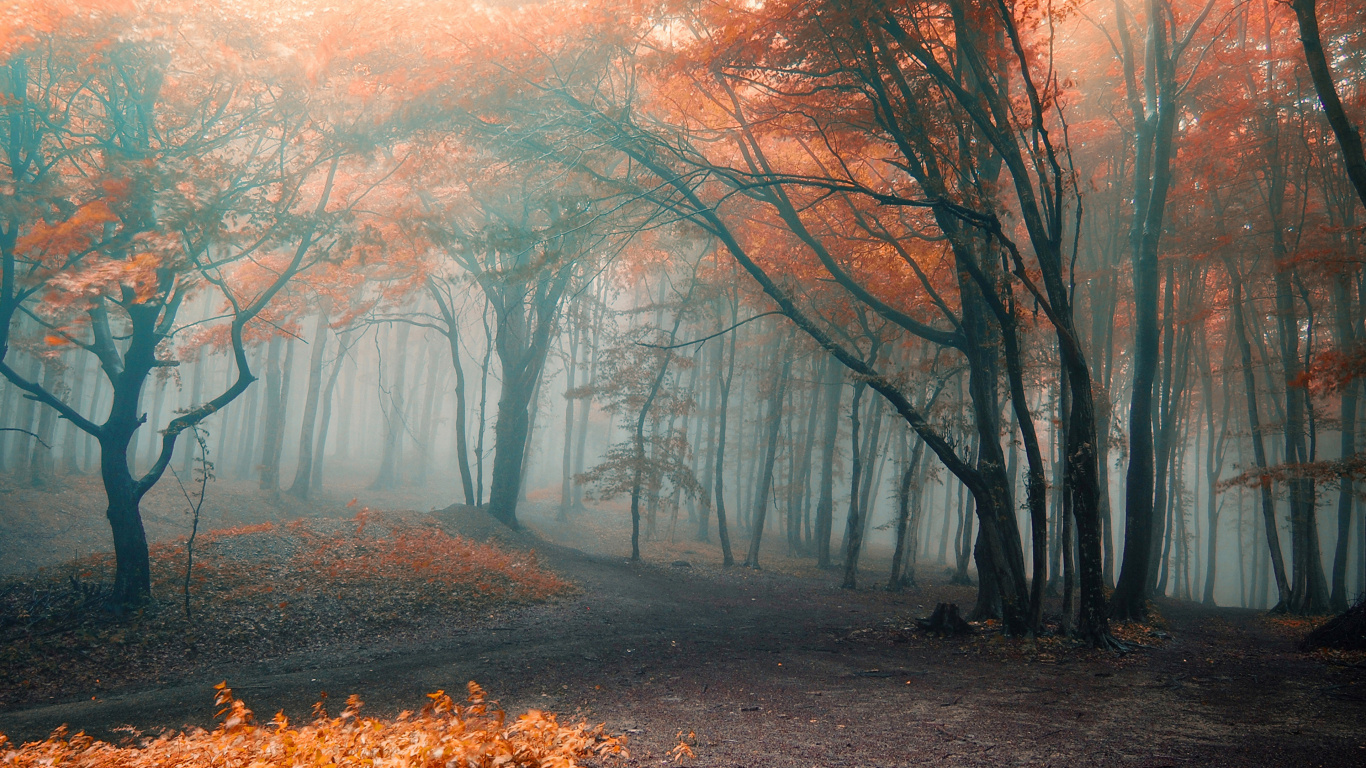 Обои 1366x768 атмосфера, экосистема, туман, дерево, листопадные, HD ready картинка