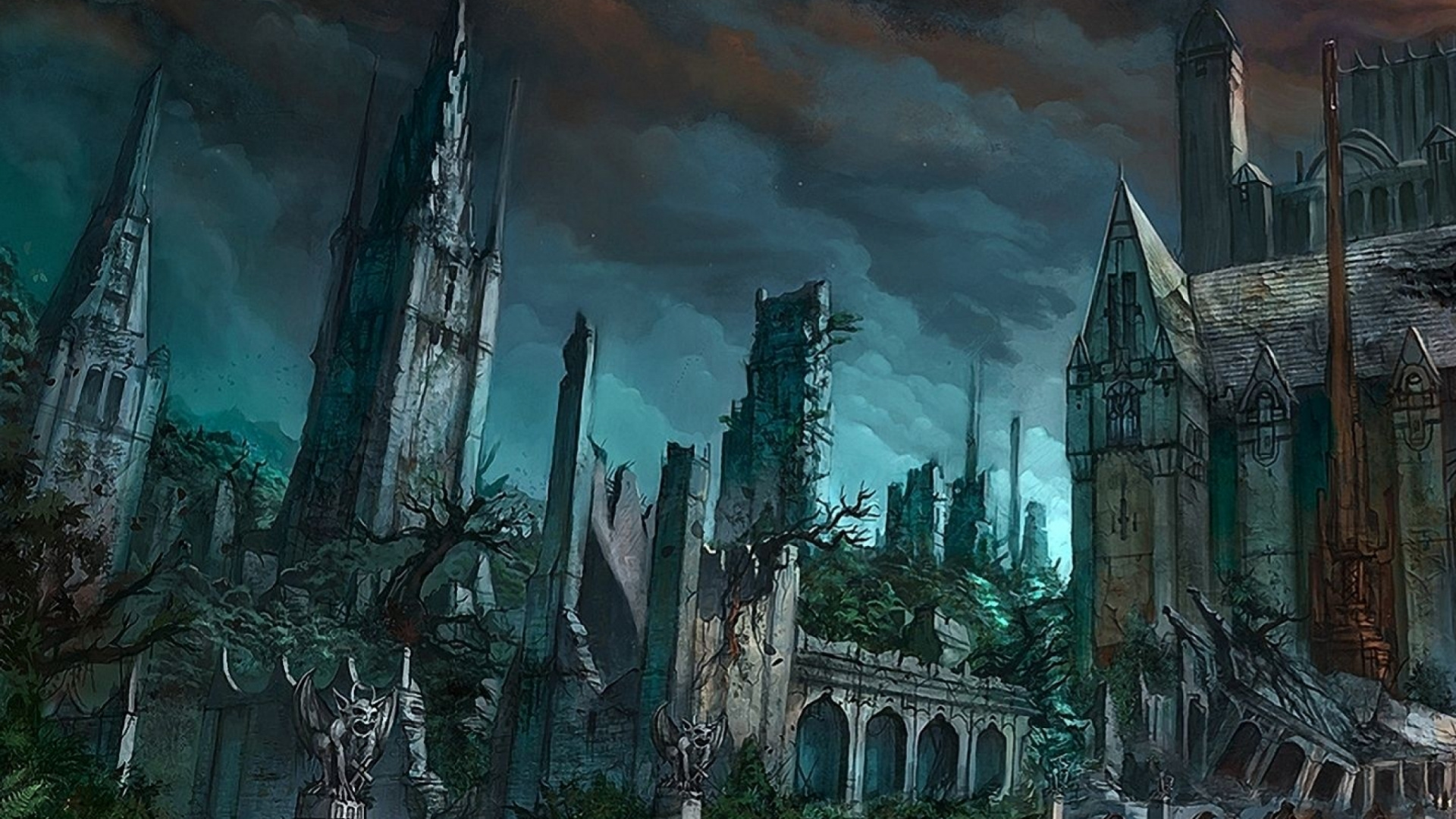 Обои 1920x1080 темные фантазии, экологическое искусство, развалины, руины, вампир, Full HD, HDTV, 1080p 16:9 картинка