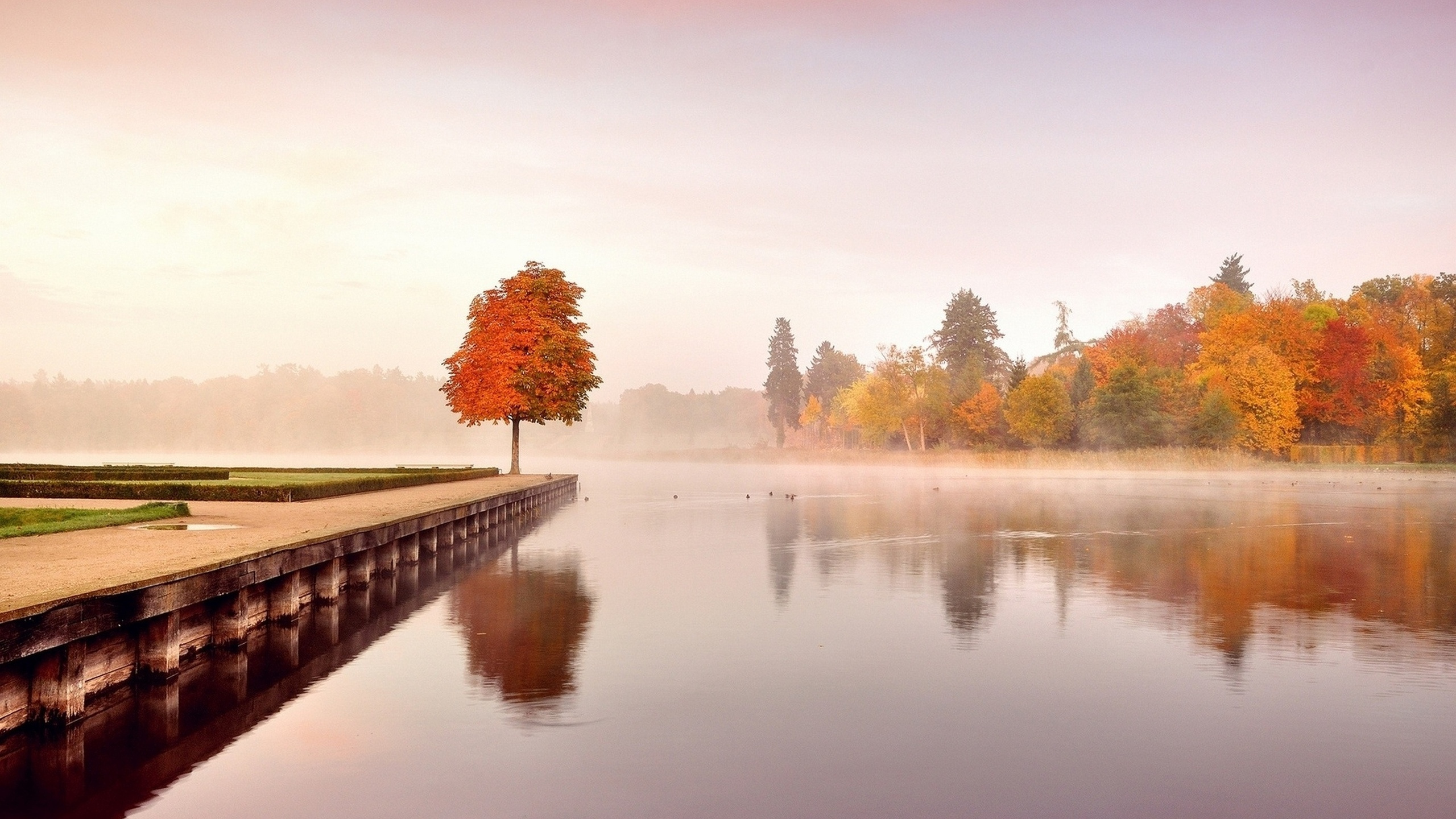 Обои 2560x1440 осень, пейзаж, отражение, природа, дерево, WQHD, QHD, 16:9 картинка