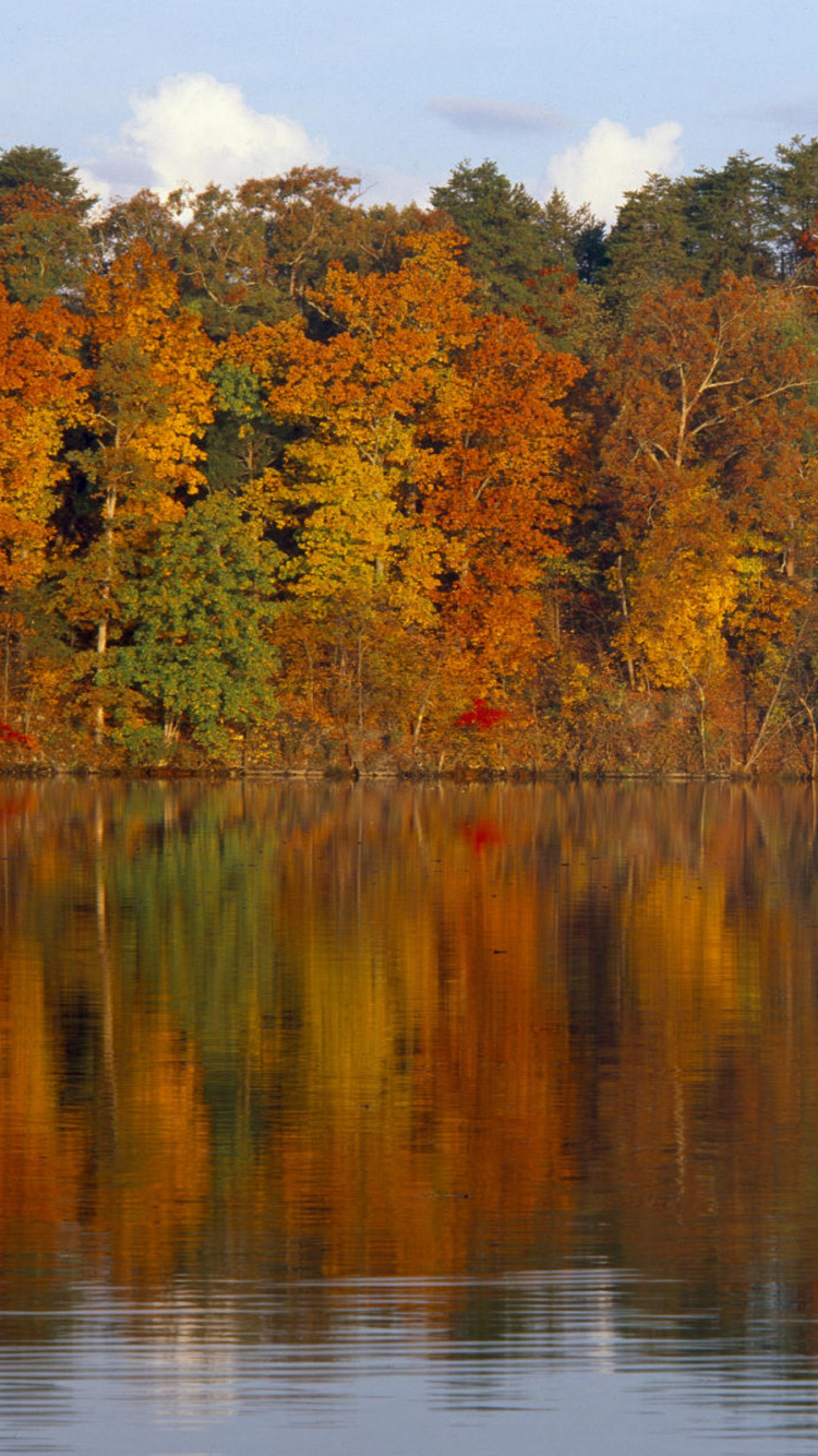 Обои дерево, отражение, природа, лист, осень для iPhone 6, 6S, 7, 8, заставка, 750x1334 картинка