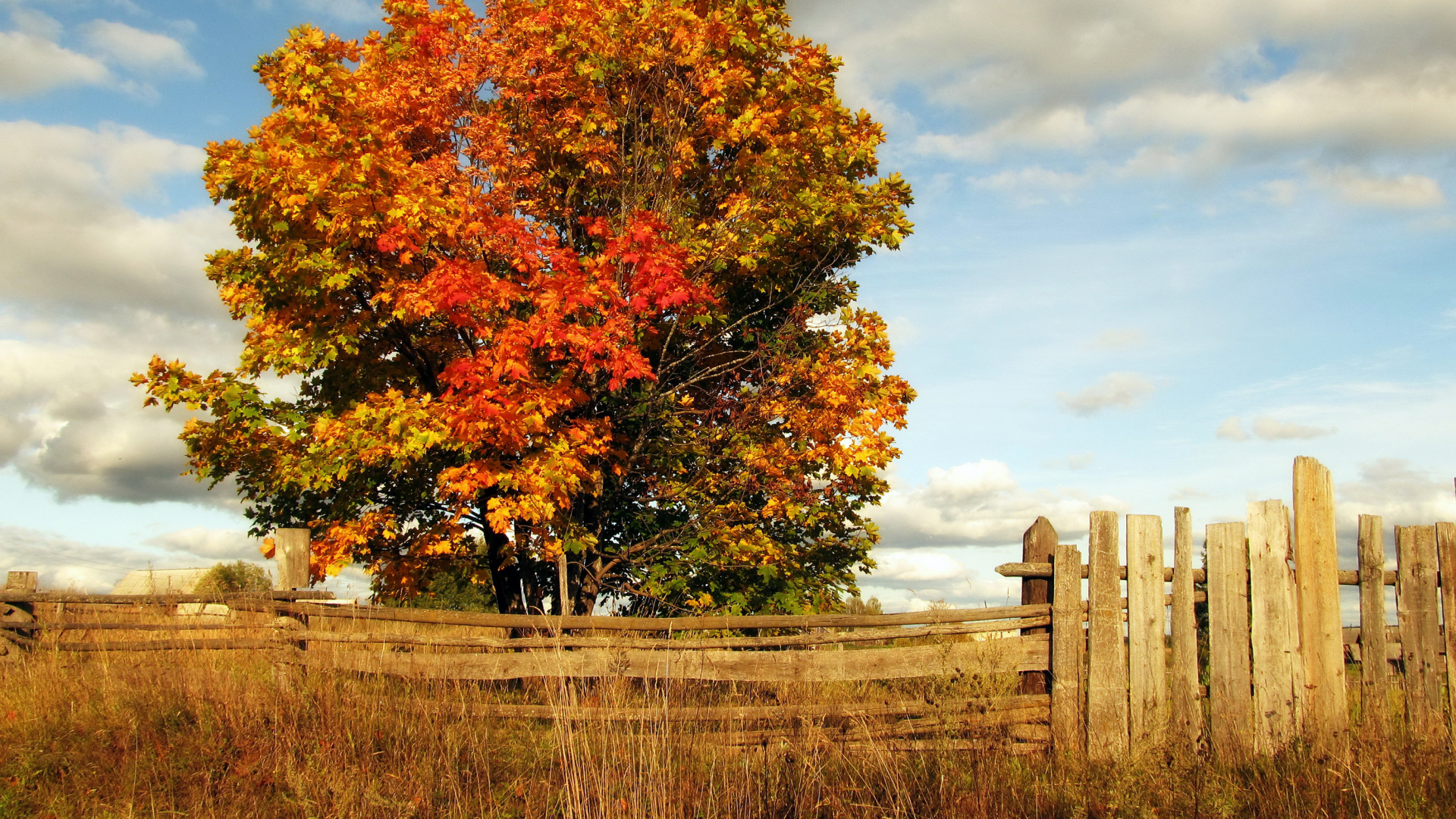 Обои 1920x1080 дерево, лист, осень, облако, пейзаж, Full HD, HDTV, 1080p 16:9 картинка