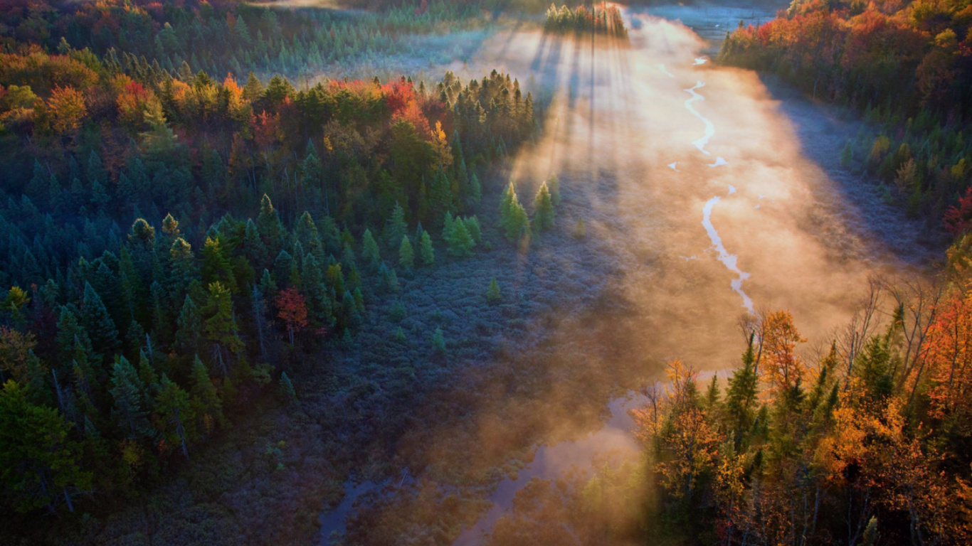 Обои 1366x768 Зеленая Гора Национальный Лес, гора, природа, утро, реки, HD ready картинка