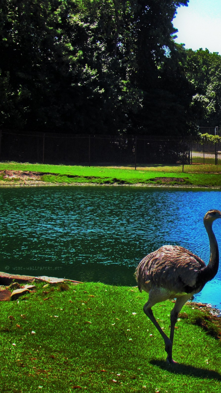 Обои птица, природный заповедник, вода, общие страуса, отражение для iPhone 6, 6S, 7, 8, заставка, 750x1334 картинка