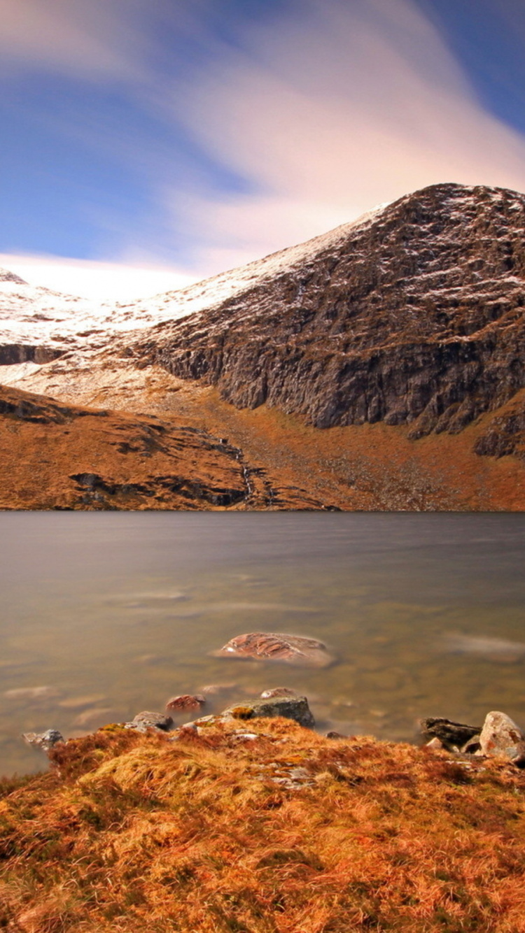 Обои гора, нагорье, природа, озеро, дикая местность для iPhone 6, 6S, 7, 8, заставка, 750x1334 картинка