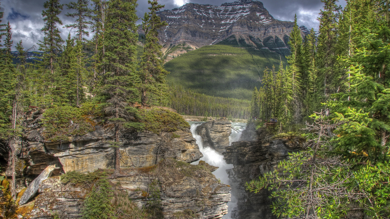Обои 1366x768 Атабаска-Фоллс, природа, вода, дикая местность, природный заповедник, HD ready картинка