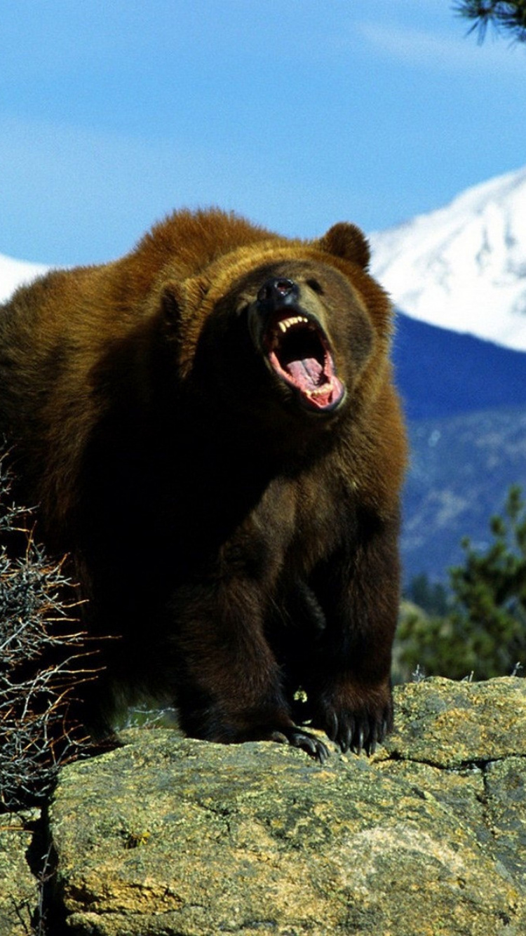 Обои Гризли, медведь, бурый медведь, наземные животные, живая природа для iPhone 6, 6S, 7, 8, заставка, 750x1334 картинка