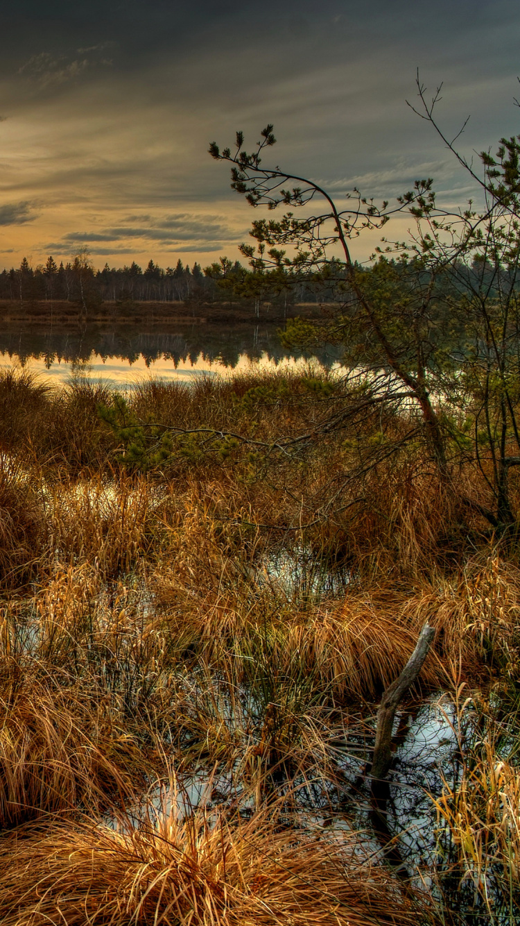 Обои закат, природа, отражение, природный заповедник, болото для iPhone 6, 6S, 7, 8, заставка, 750x1334 картинка