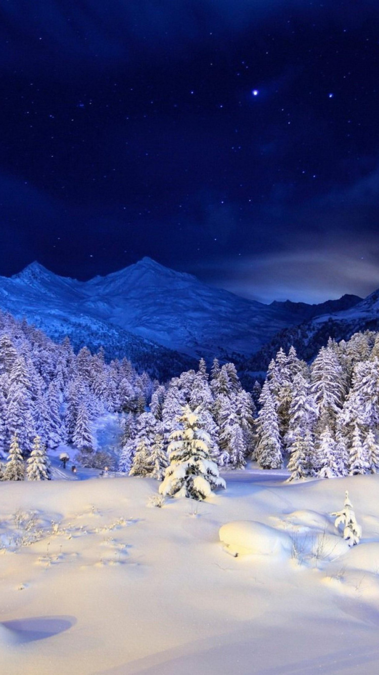 Обои снег, зима, природа, гора, синий для iPhone 6, 6S, 7, 8, заставка, 750x1334 картинка