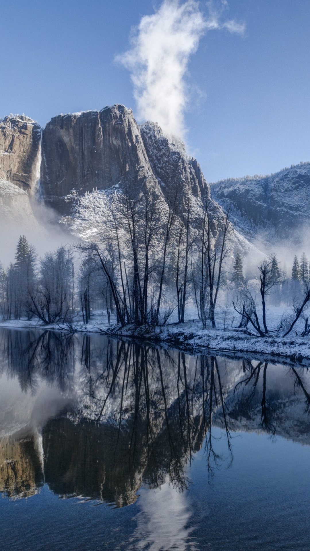 Обои природный ландшафт, природа, отражение, вода, зима для iPhone 6S+/7+/8+, заставка, 1080x1920 картинка