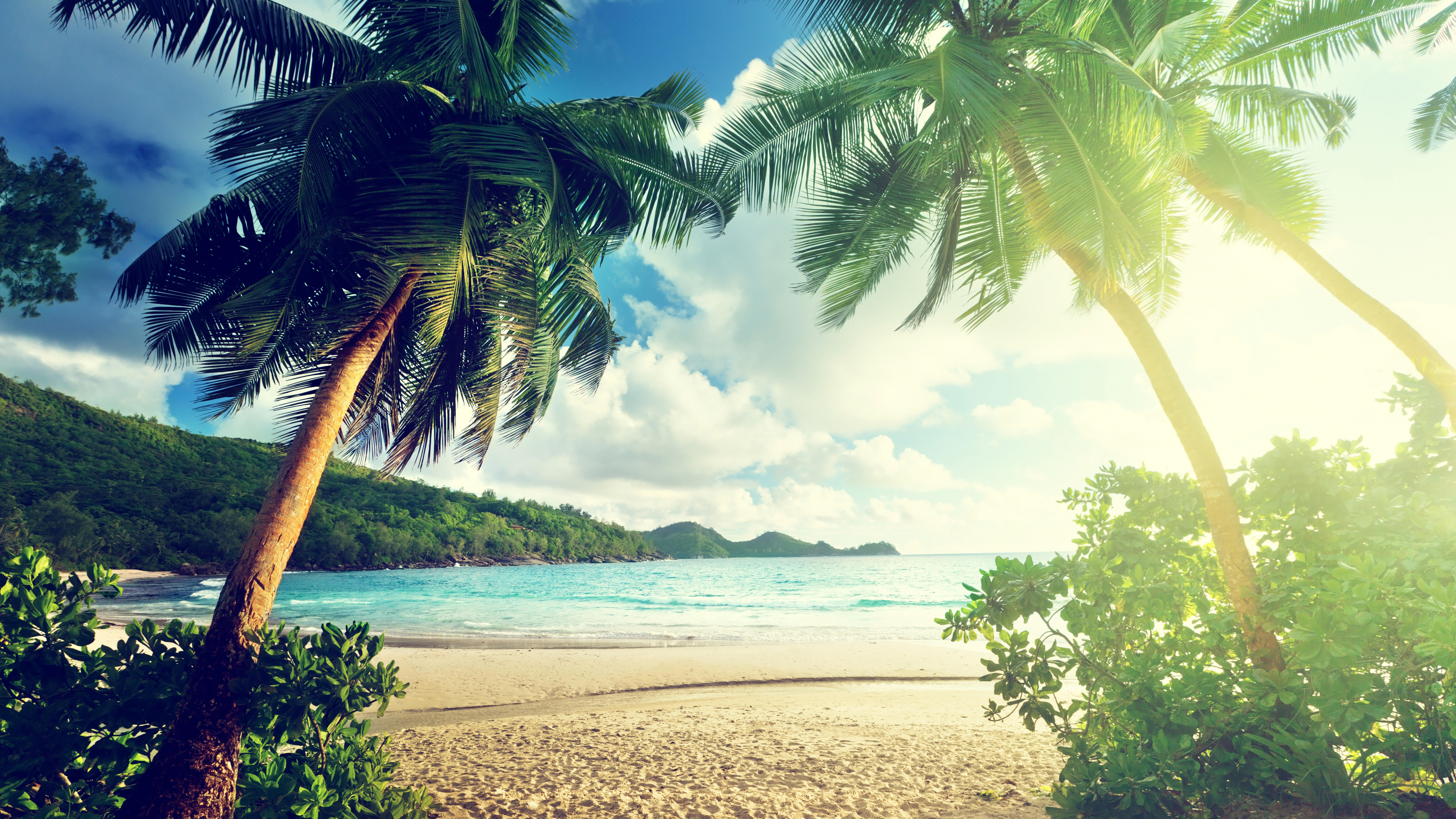 Обои 7680x4320 вода, водоем, небо, тропическая зона, берег, 8K Ultra HD картинка