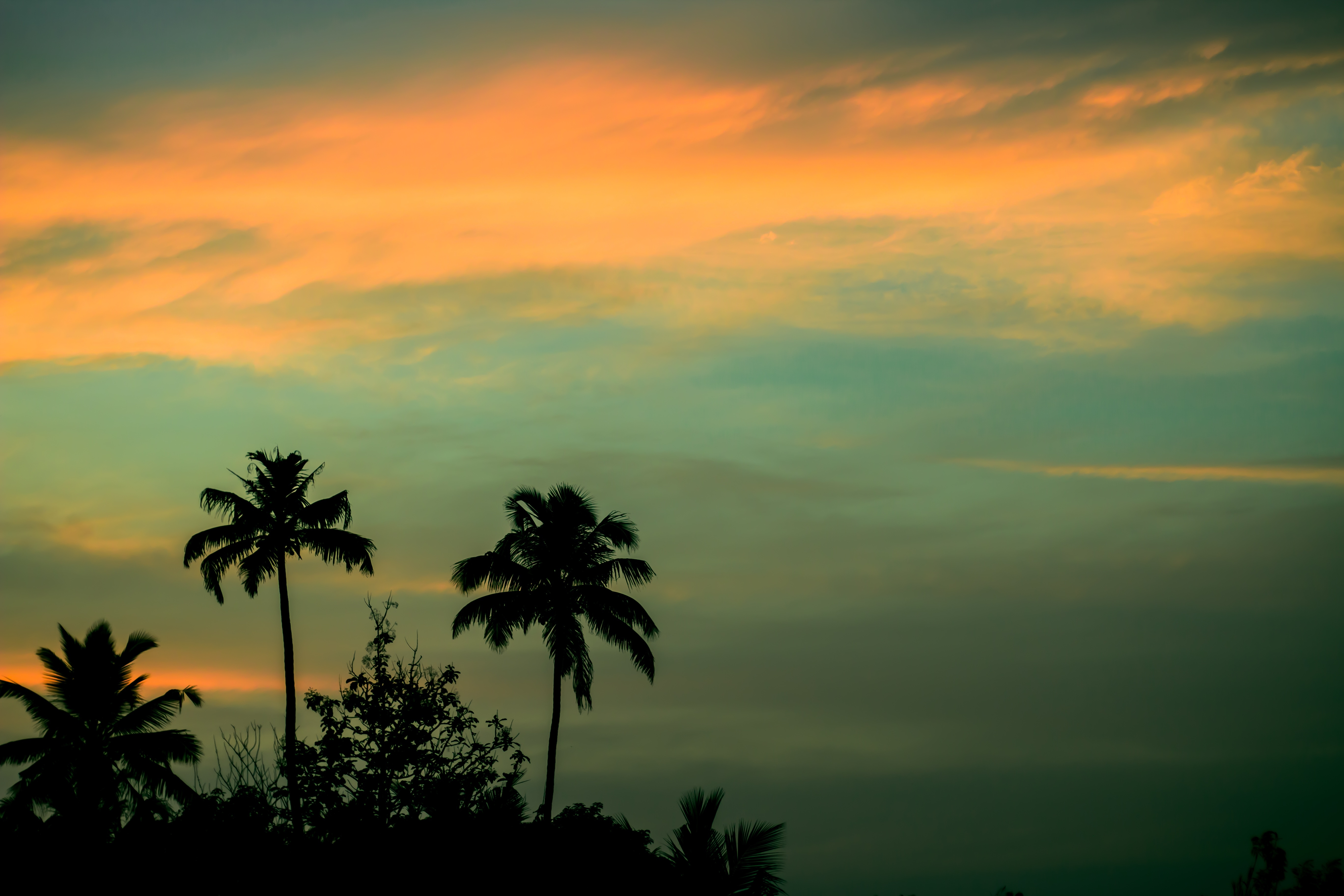 Обои природа, Пальма, горизонт, закат, рассвет, фото, заставка