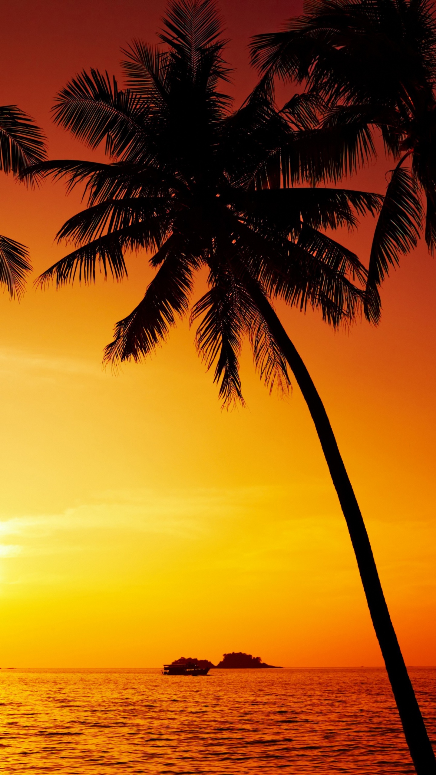 Обои закат, дерево, тропическая зона, Пальма, послесвечение для Google Pixel XL, Meizu Pro 7, Nokia 8, HTC U, Huawei P10 Quad HD, заставка, 1440x2560 картинка