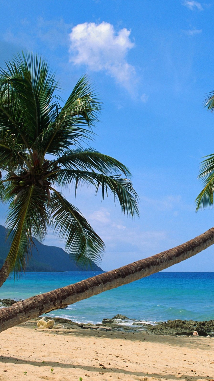 Обои дерево, тропическая зона, Пальма, Карибский бассейн, пляж для iPhone 6, 6S, 7, 8, заставка, 750x1334 картинка