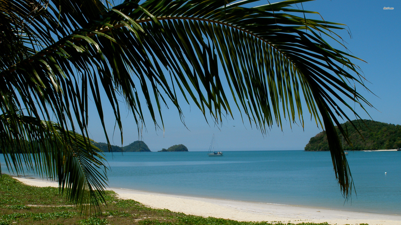 Обои 1366x768 тропическая зона, море, вода, пляж, дерево, HD ready картинка