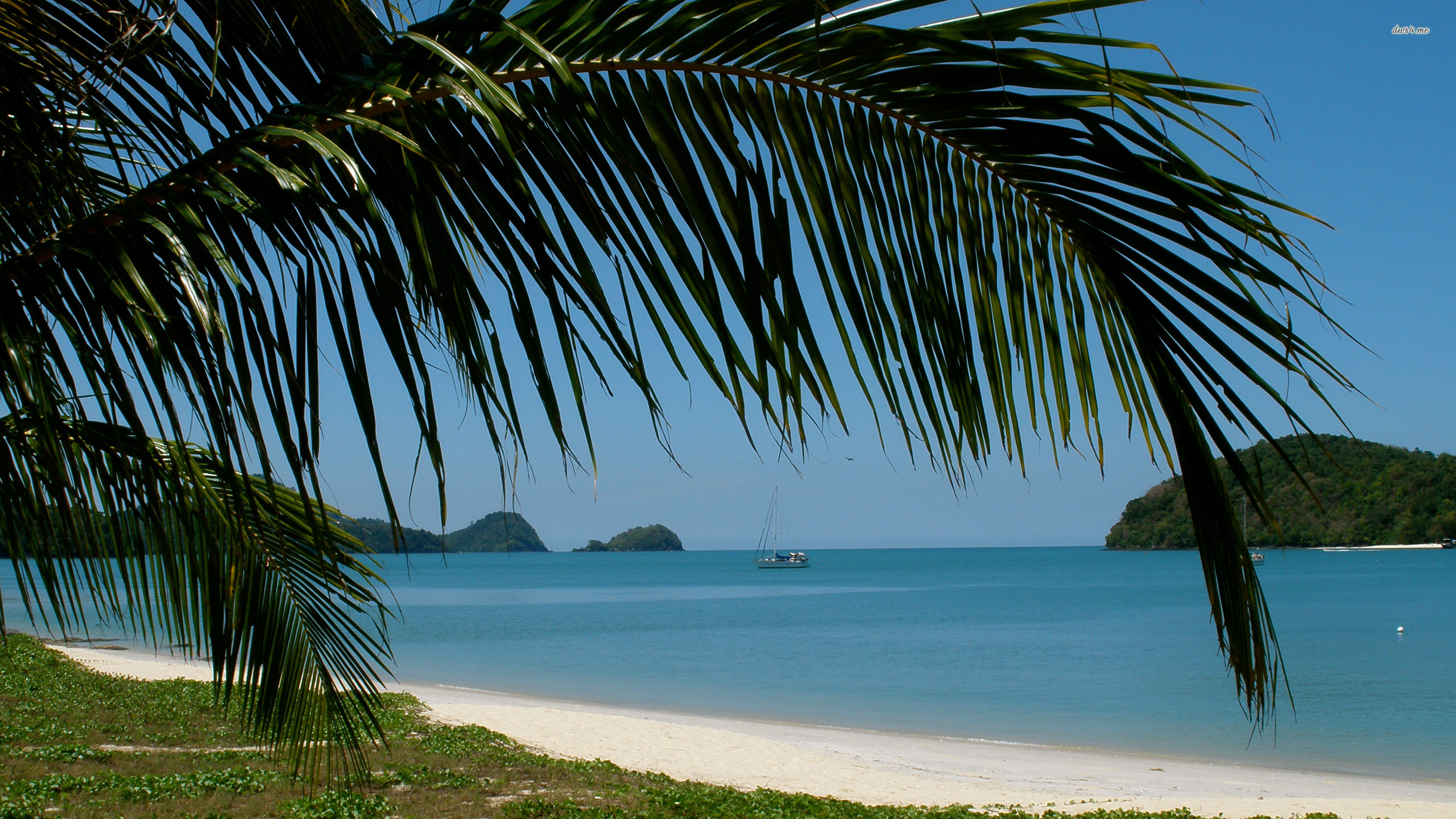 Обои 2560x1440 тропическая зона, море, вода, пляж, дерево, WQHD, QHD, 16:9 картинка