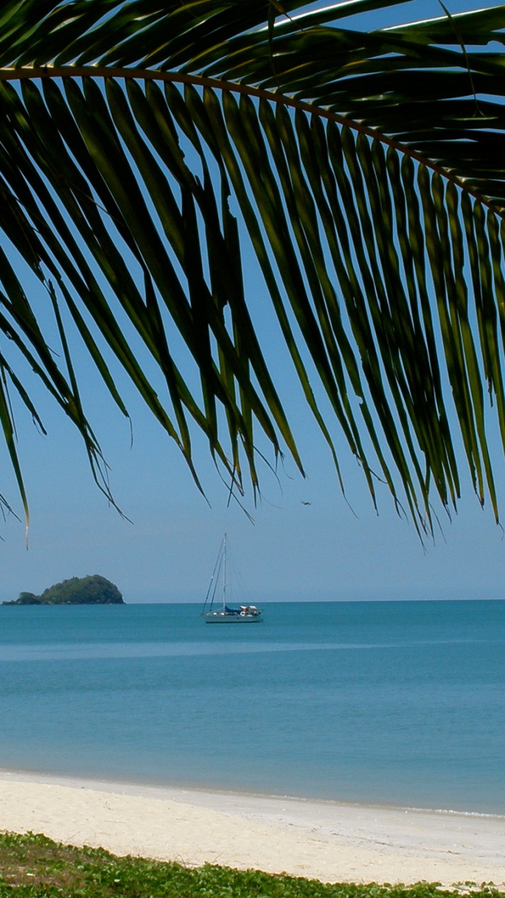 Обои тропическая зона, море, вода, пляж, дерево для HD Samsung Galaxy S3/J3/J4/J5, Meizu M5, Sony Xperia L1/L2, заставка, 720x1280 картинка