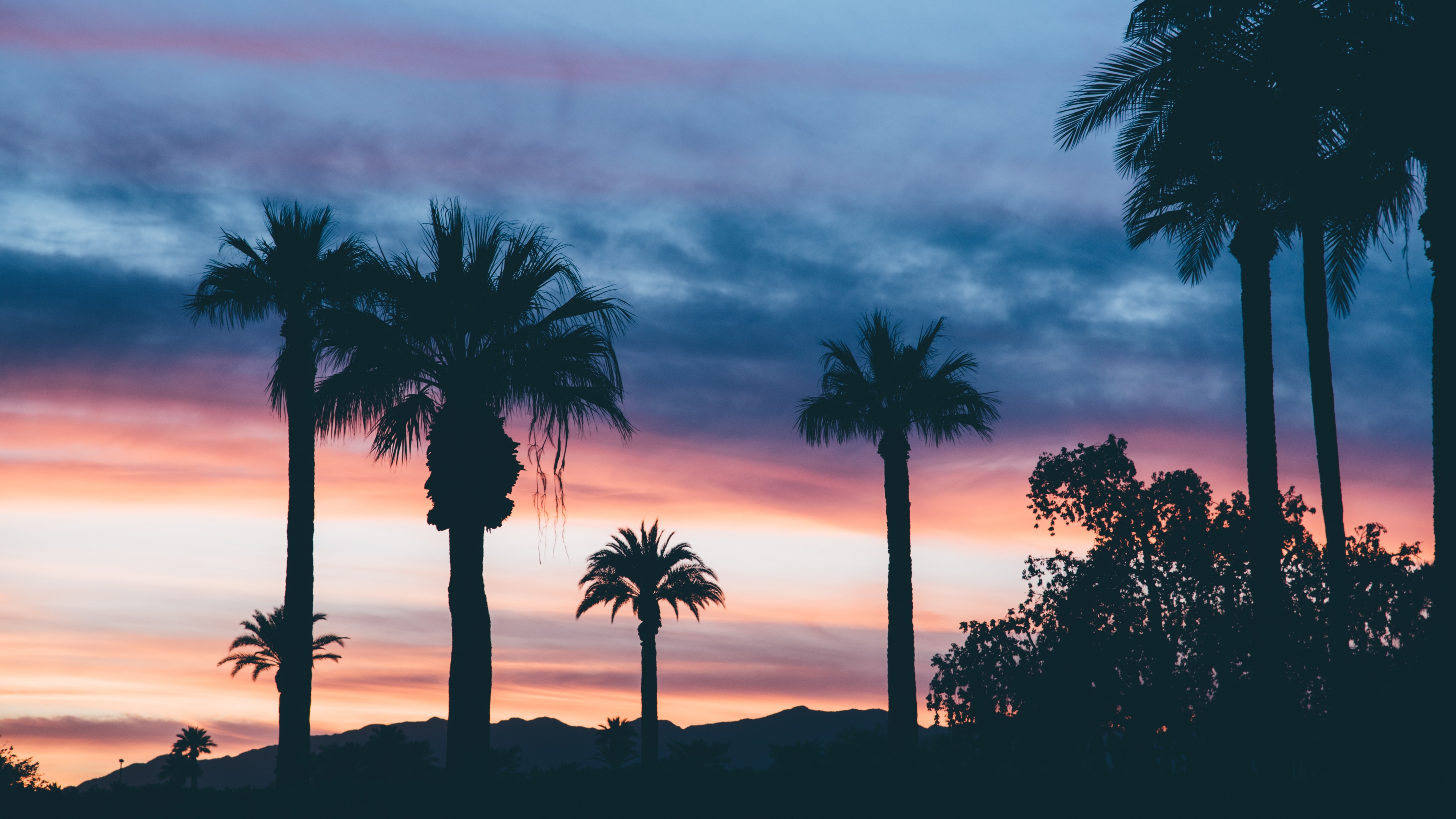 Обои пальмовые рощи, дерево, Пальма, закат, древесные растения, фото, заставка