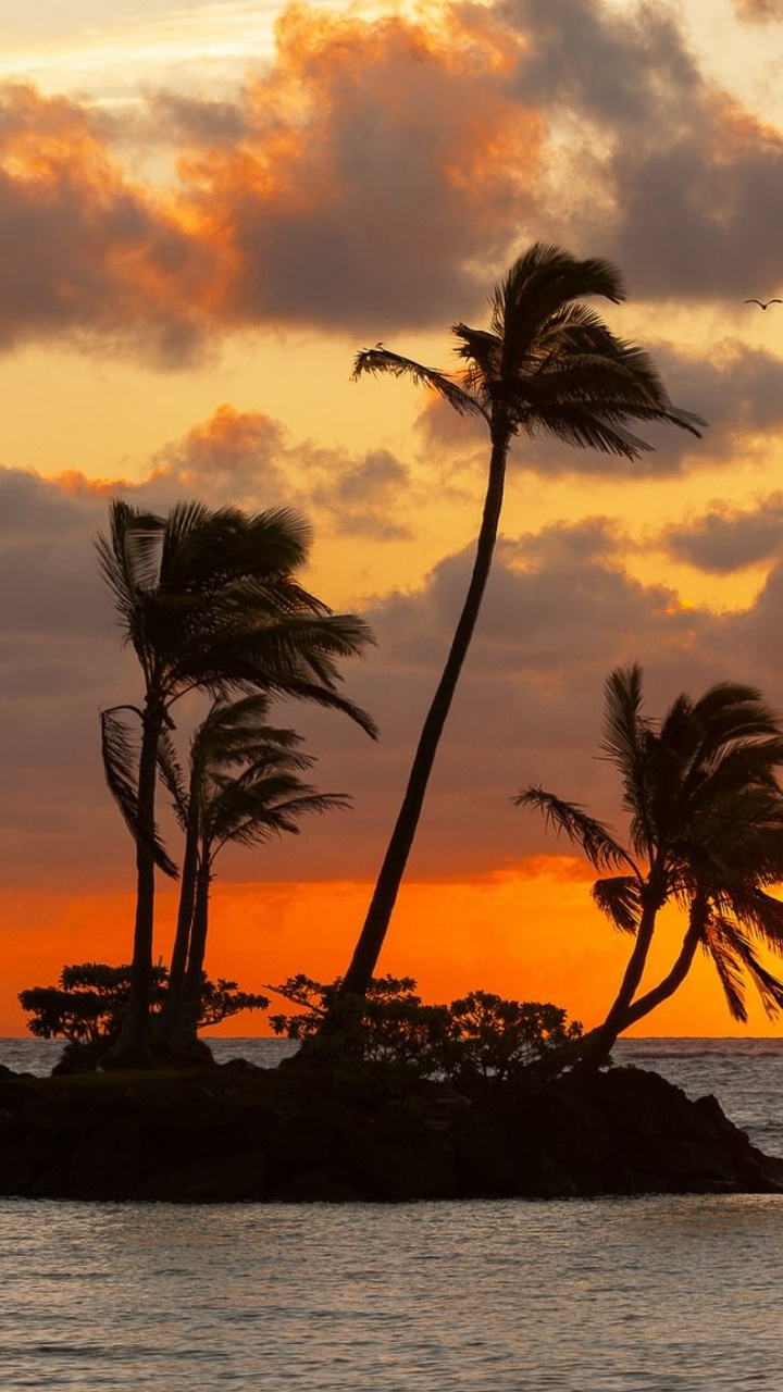 Обои закат, море, пляж, Остров, горизонт для HD Samsung Galaxy S3/J3/J4/J5, Meizu M5, Sony Xperia L1/L2, заставка, 720x1280 картинка
