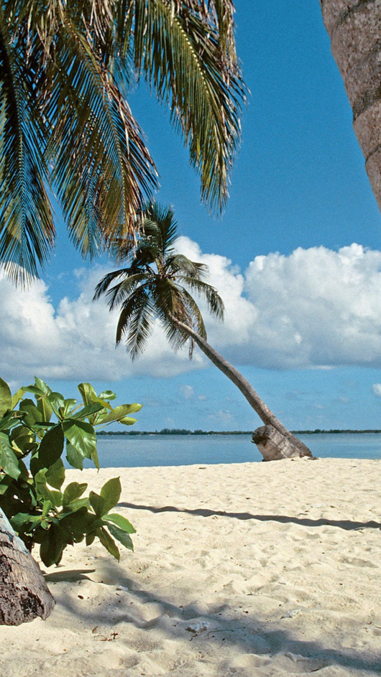 Обои дерево, Пальма, тропическая зона, пляж, Карибский бассейн для iPhone 6, 6S, 7, 8, заставка, 750x1334 картинка