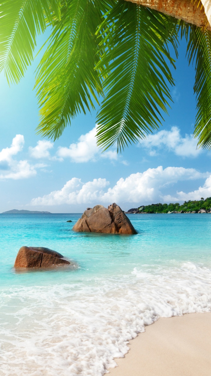 Обои пляж, океан, море, тропическая зона, Пальма для HD Samsung Galaxy S3/J3/J4/J5, Meizu M5, Sony Xperia L1/L2, заставка, 720x1280 картинка