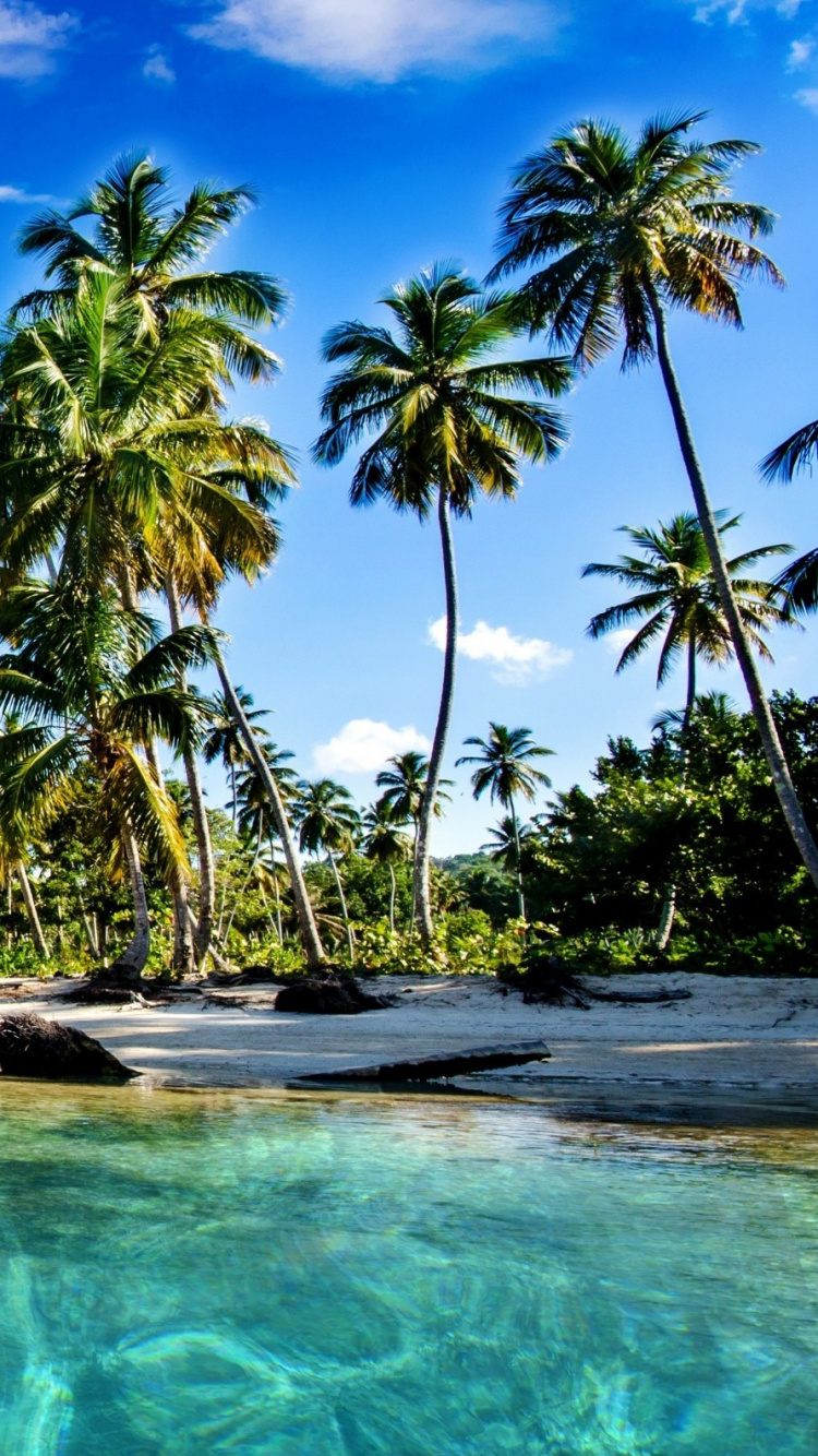 Обои пляж, природа, тропическая зона, вода, Пальма для iPhone 6, 6S, 7, 8, заставка, 750x1334 картинка