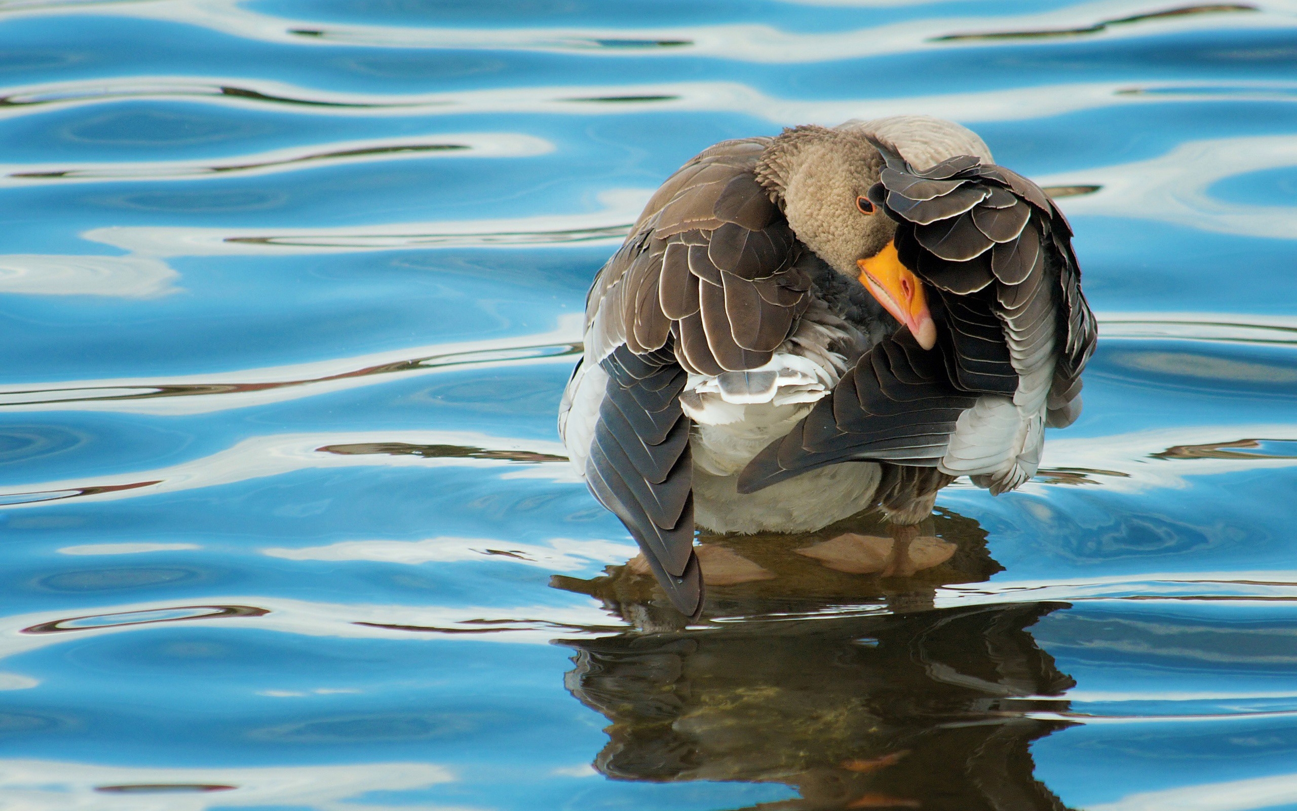 Обои утка, водоплавающие птицы, клюв, вода, отражение, фото, заставка