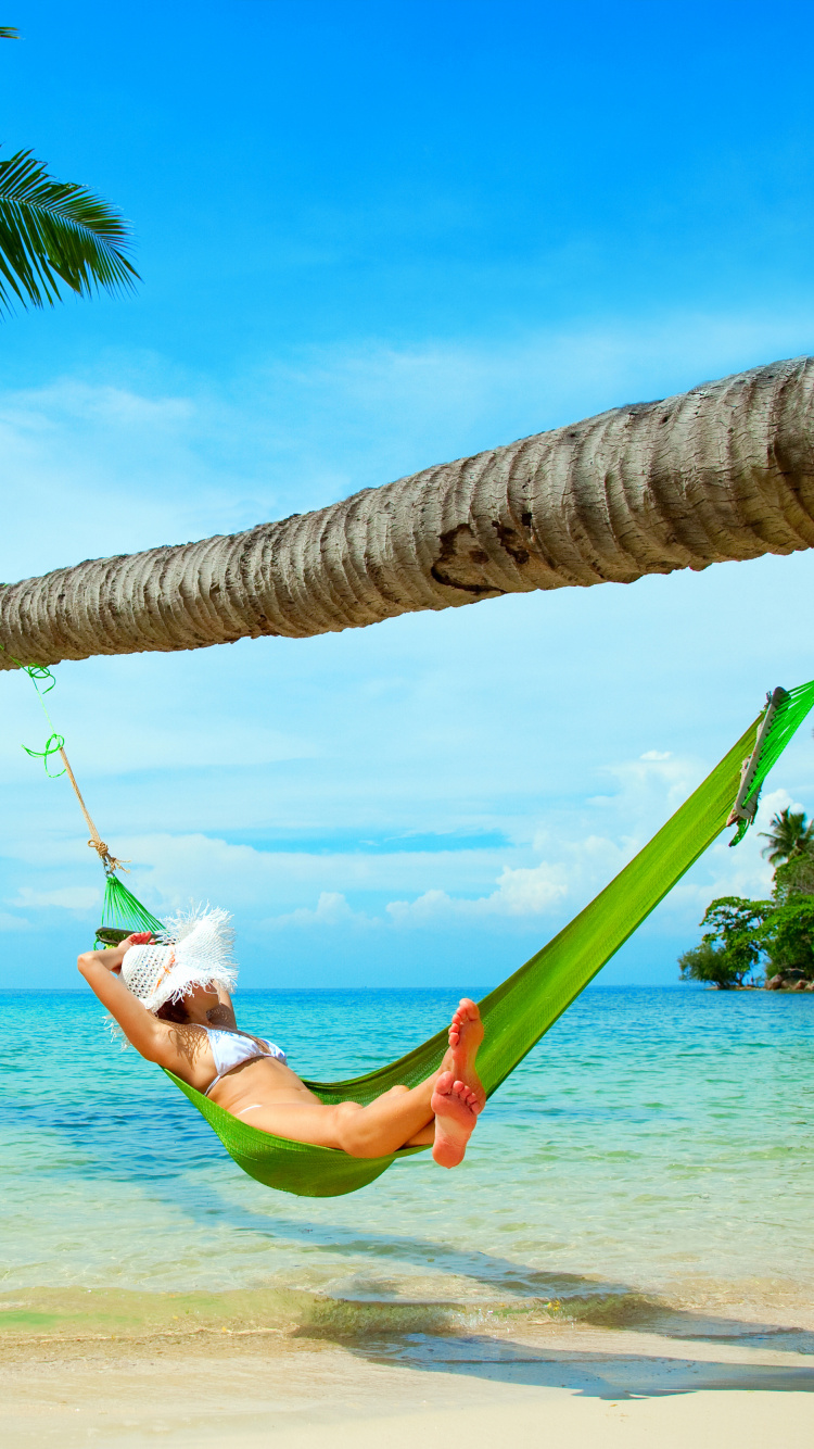 Обои гамак, пляж, море, тропическая зона, отпуск для iPhone 6, 6S, 7, 8, заставка, 750x1334 картинка