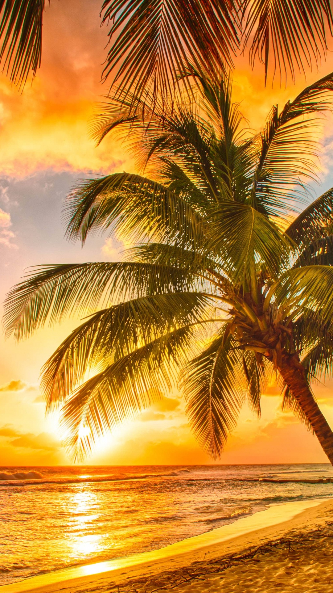 Обои пляж, закат, море, природа, тропическая зона на телефон Android, 1080x1920 Full HD картинки
