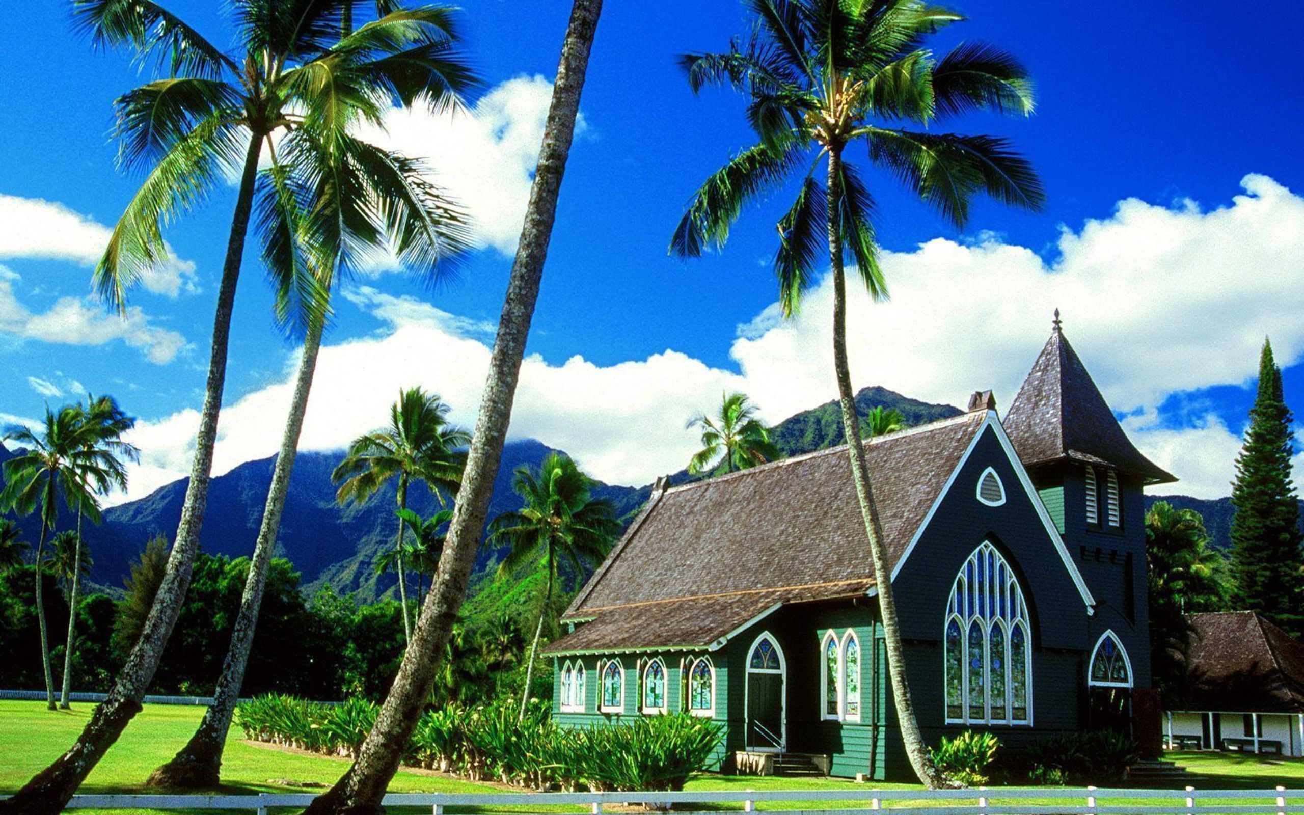 Обои Церковь Huiia Waioli, свойство, дерево, Пальма, недвижимость, фото, заставка