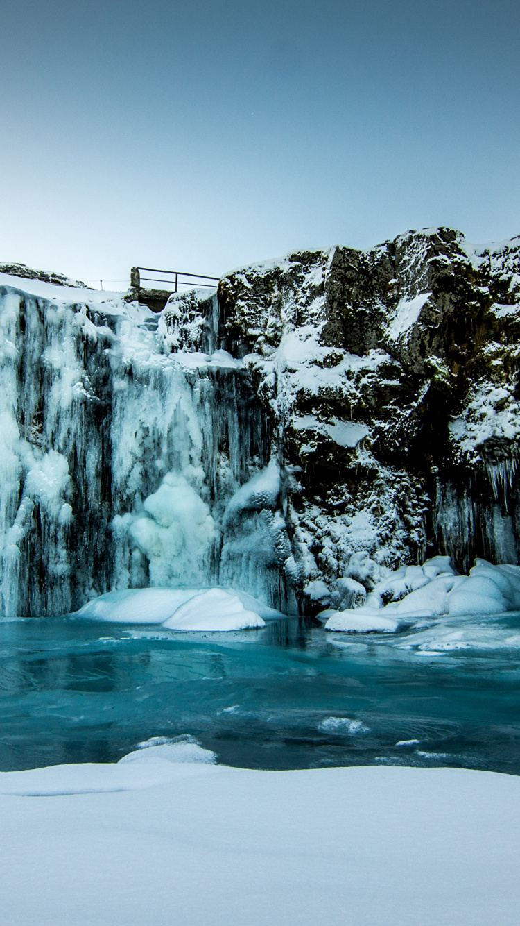 Обои водопад, снег, водоем, вода, природа для iPhone 6, 6S, 7, 8, заставка, 750x1334 картинка