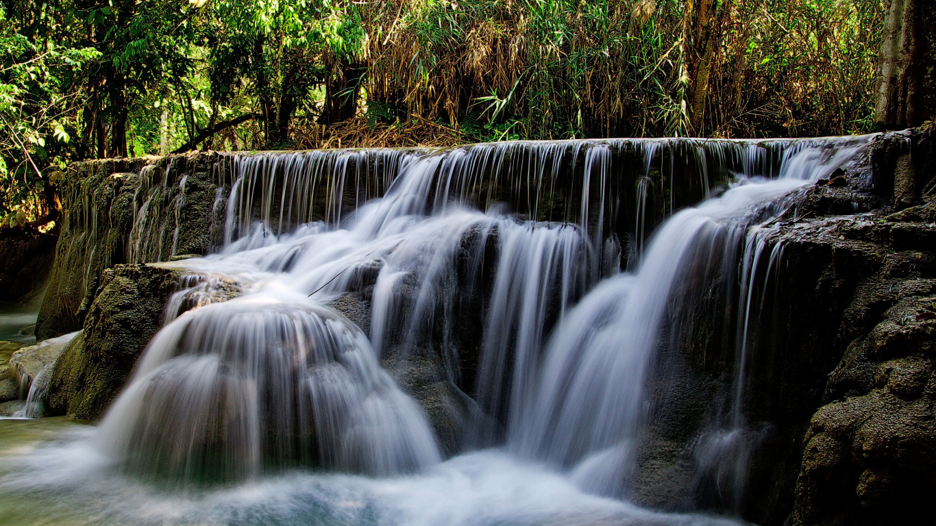 Обои 1366x768 водопад, гидроресурсы, водоем, вода, природа, HD ready картинка