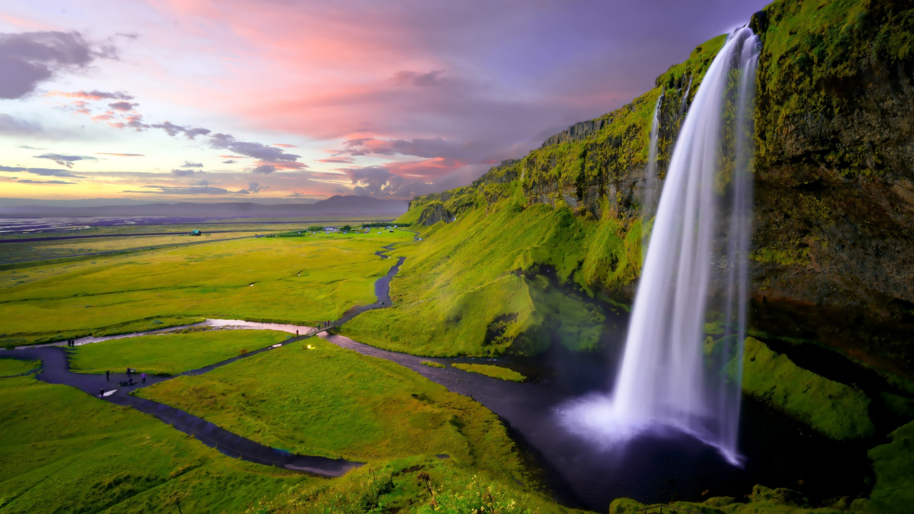 Обои 1280x720 селйяландсфосс, водопад, природа, гидроресурсы, водоток, HD, HDV, 720p, 16:9 картинка
