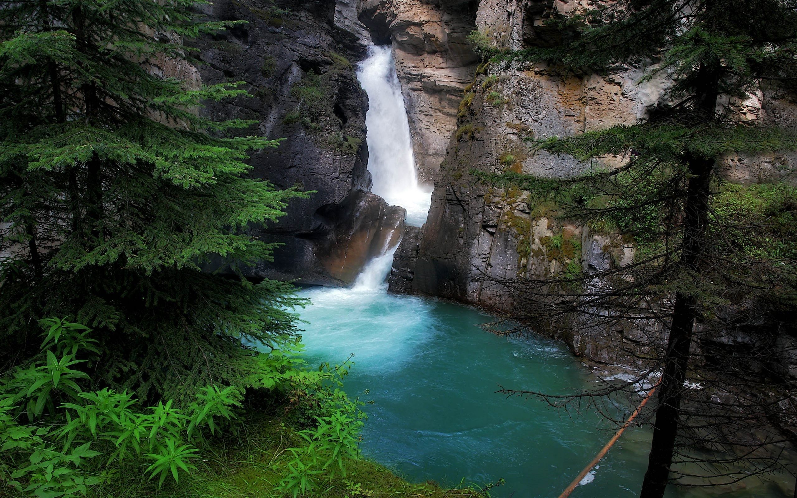 Обои Джонстон Каньон Ниже Водопада, водопад, банфф, гидроресурсы, водоем, фото, заставка