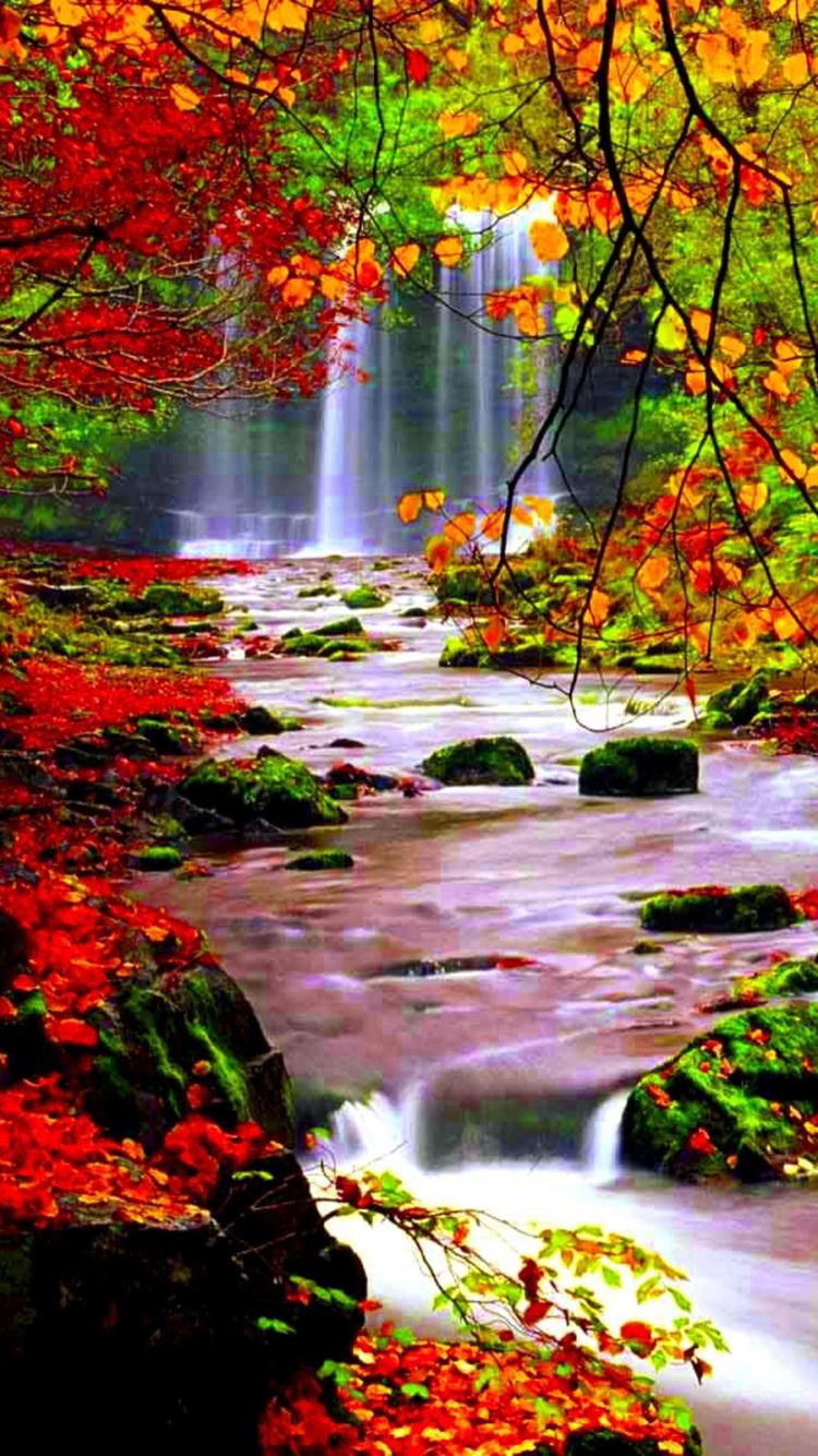 Обои осень, природа, дерево, лист, поток для iPhone 6, 6S, 7, 8, заставка, 750x1334 картинка